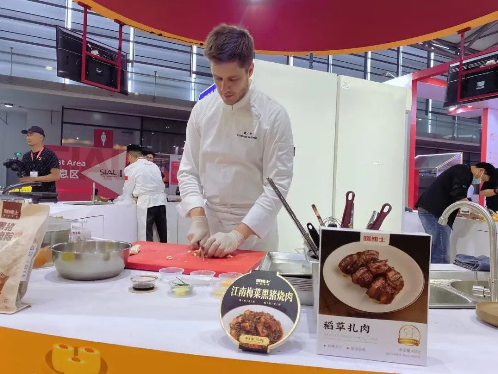 SIAL西雅國際食品展中式餐飲發(fā)展論壇上,來自青蓮食品副總裁繆雨的主題演講《加強(qiáng)產(chǎn)業(yè)鏈建設(shè),打造從牧場到餐桌的美味》深入闡述了消費(fèi)終端從白豬到黑豬的消費(fèi)需求轉(zhuǎn)變。她強(qiáng)調(diào):中國黑豬的滋味,是烙印在國人基因中的美味記憶,并以此呼吁國人更多關(guān)注到黑豬市場,以此來帶動新消費(fèi)升級和新體驗(yàn)。一枚粽子、一個包子、一只餃子,膳博士都要堅(jiān)持用新鮮黑豬肉為原料來還原食物匠心味道,倡導(dǎo)用“對待家人的態(tài)度做食品”,用少添加、0添加“清潔標(biāo)簽”體現(xiàn)食物本味。在SIAL中餐廳線下活動中,由國際星級主廚、國宴級大師親自掌勺,指定“膳博士”黑豬生鮮原料和預(yù)制菜系列,展示創(chuàng)意新中餐、經(jīng)典八大菜系、國潮點(diǎn)心局、即食預(yù)制菜等主題菜,讓現(xiàn)場沉浸式感受中國風(fēng)味蕾新體驗(yàn),贏得中國國際頂級廚師“非常美味”好評!
